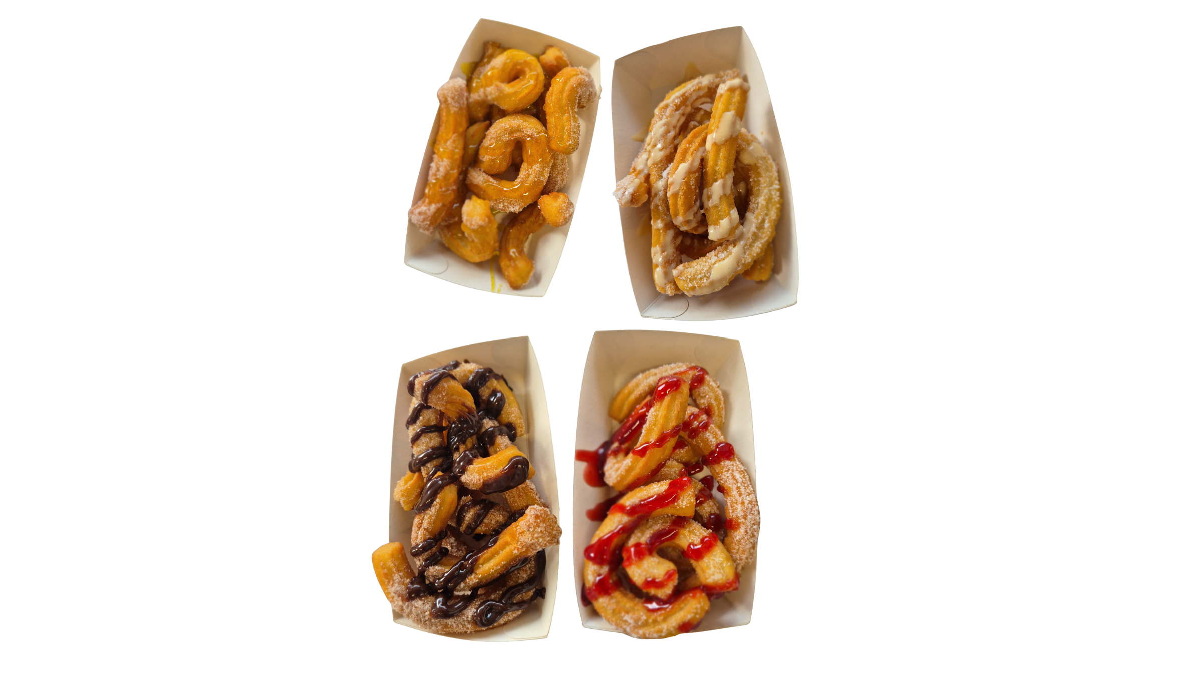 Frisch frittierte Churros, serviert mit deiner Wahl aus feiner Erdbeer-, Nuss-Nougat-, Vanille- oder Mango-Maracuja-Sauce. Leicht, süß und aromatisch – ein Genuss für alle, die es vielfältig und lecker mögen.